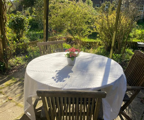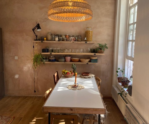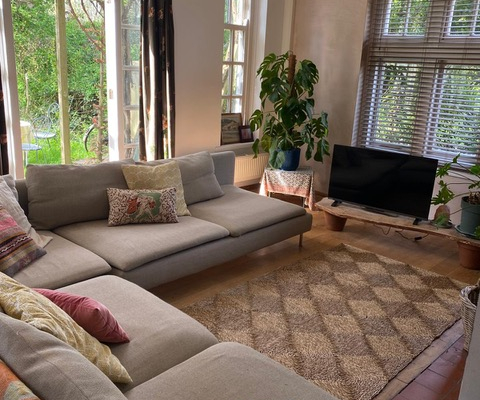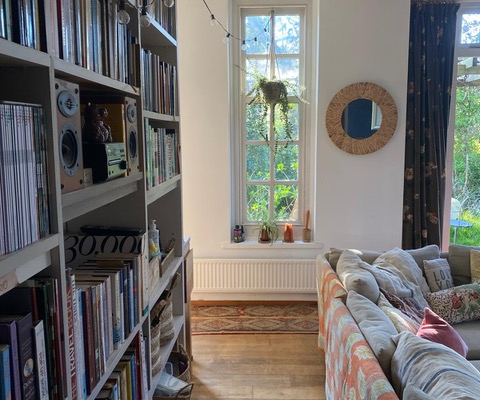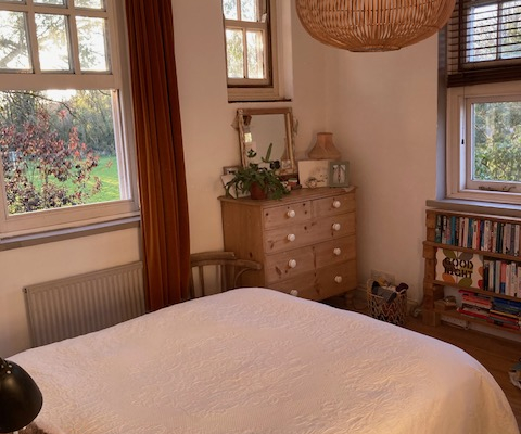 A light 4/5 bedroom semi detached house with high ceilings, oak floors and large woodburner.