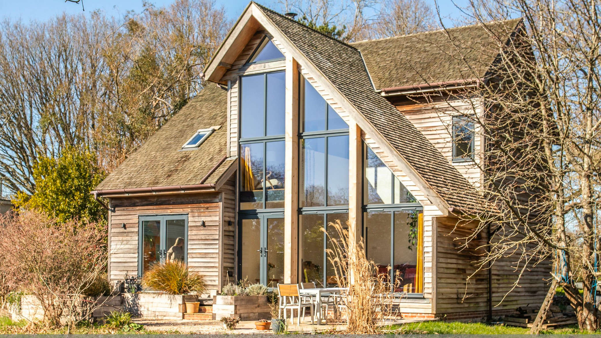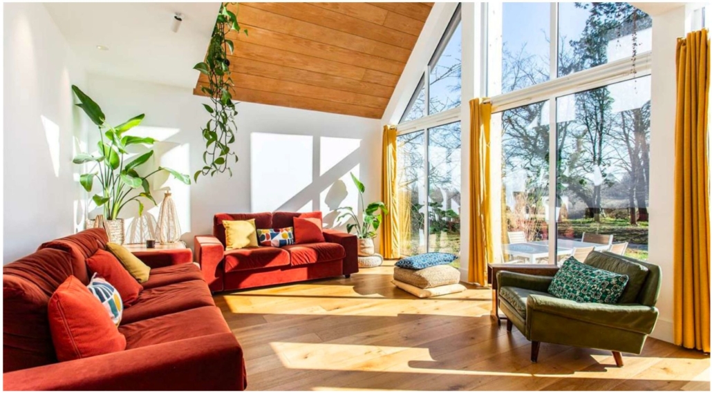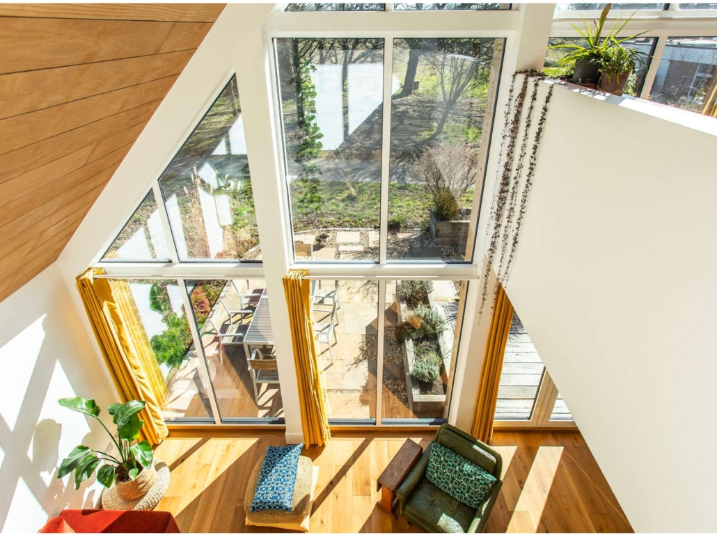 - Vaulted sitting room with windows from ground floor to top of gable end